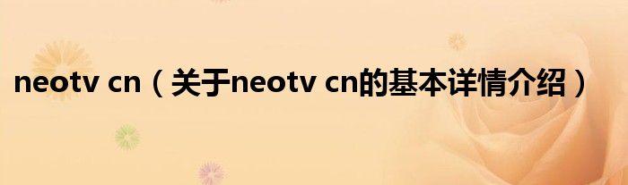 本文关于neotv cn的基本详情介绍就讲解完毕,希望对大家有所帮助。
