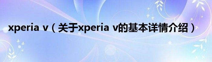 本文关于xperia v的基本详情介绍就讲解完毕,希望对大家有所帮助。