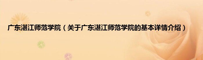 本文关于广东湛江师范学院的基本详情介绍就讲解完毕,希望对大家有所帮助。