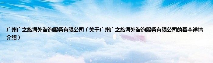本文关于广州广之旅海外咨询服务有限公司的基本详情介绍就讲解完毕,希望对大家有所帮助。