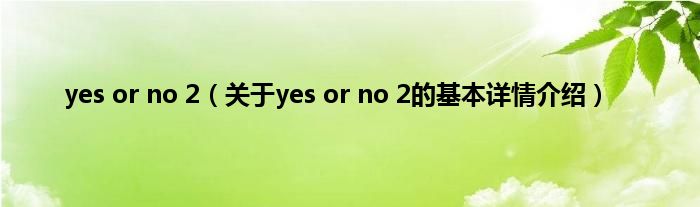 本文关于yes or no 2的基本详情介绍就讲解完毕,希望对大家有所帮助。