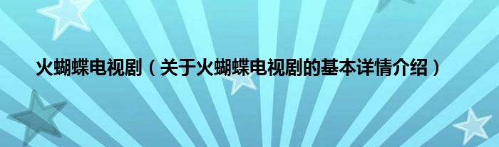 本文关于火蝴蝶电视剧的基本详情介绍就讲解完毕,希望对大家有所帮助。