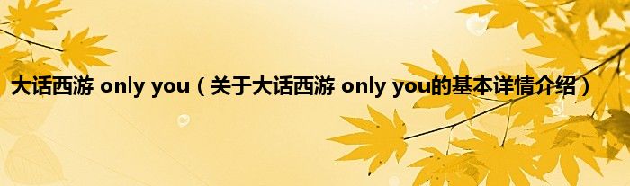 大话西游 only you(关于大话西游 only you的基本详情介绍)