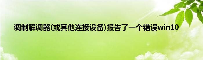 大家好,小问来为大家解答以上问题。调制解调器(或其他连接设备)报告了一个错误win10这个很多人还不知道,现在让我们一起来看看吧!