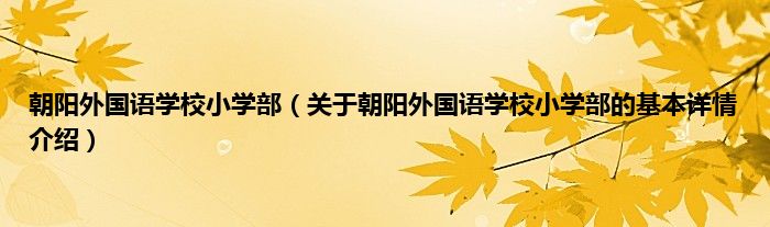 本文关于朝阳外国语学校小学部的基本详情介绍就讲解完毕,希望对大家有所帮助。