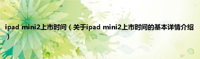 本文关于ipad mini2上市时间的基本详情介绍就讲解完毕,希望对大家有所帮助。