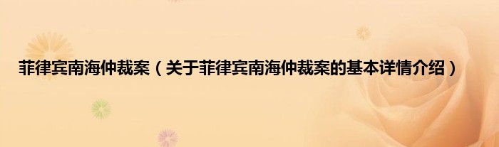 本文关于菲律宾南海仲裁案的基本详情介绍就讲解完毕,希望对大家有所帮助。