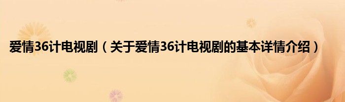 本文关于爱情36计电视剧的基本详情介绍就讲解完毕,希望对大家有所帮助。