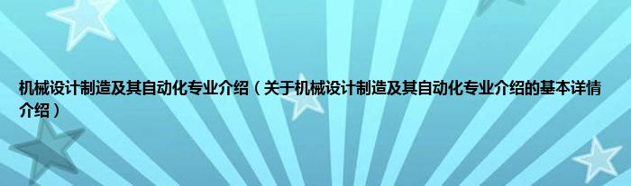 机械设计制造及其自动化专业介绍(关于机械设计制造及其自动化专业介绍的基本详情介绍)