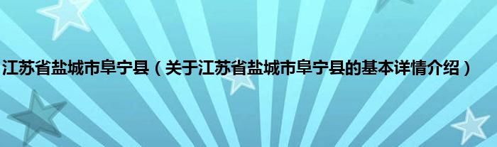 本文关于江苏省盐城市阜宁县的基本详情介绍就讲解完毕,希望对大家有所帮助。
