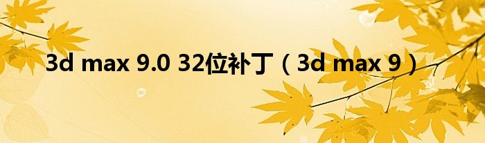 大家好,小问来为大家解答以上问题。3d max 9.0 32位补丁,3d max 9这个很多人还不知道,现在让我们一起来看看吧!