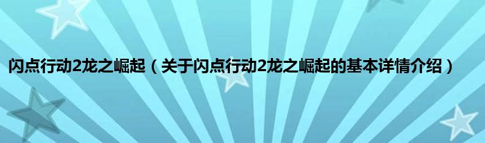 本文关于闪点行动2龙之崛起的基本详情介绍就讲解完毕,希望对大家有所帮助。