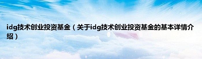 本文关于idg技术创业投资基金的基本详情介绍就讲解完毕,希望对大家有所帮助。