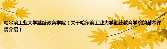 本文关于哈尔滨工业大学继续教育学院的基本详情介绍就讲解完毕,希望对大家有所帮助。