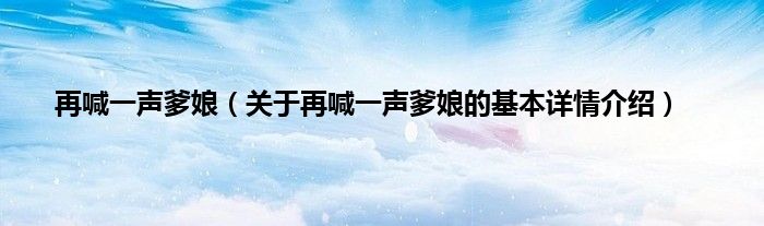 再喊一声爹娘(关于再喊一声爹娘的基本详情介绍)