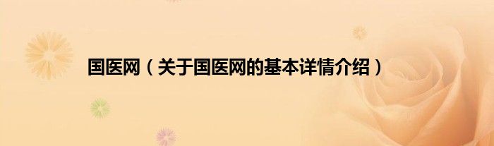 本文关于国医网的基本详情介绍就讲解完毕,希望对大家有所帮助。