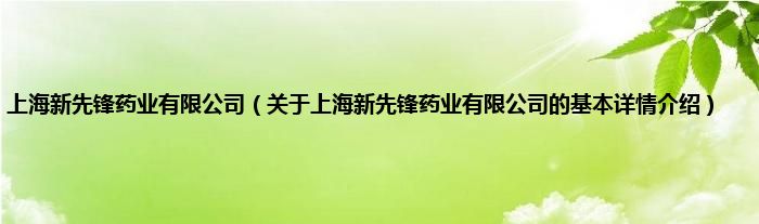 本文关于上海新先锋药业有限公司的基本详情介绍就讲解完毕,希望对大家有所帮助。