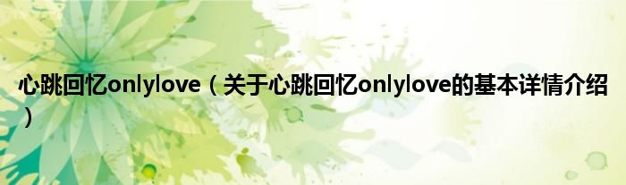 本文关于心跳回忆onlylove的基本详情介绍就讲解完毕,希望对大家有所帮助。