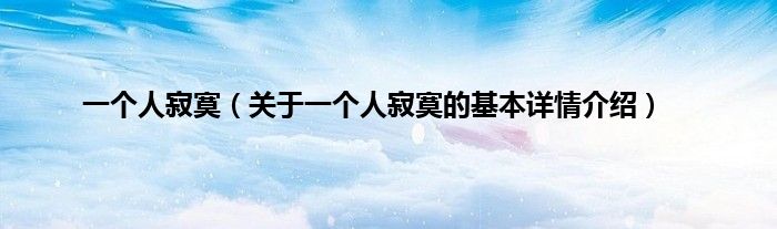 本文关于一个人寂寞的基本详情介绍就讲解完毕,希望对大家有所帮助。