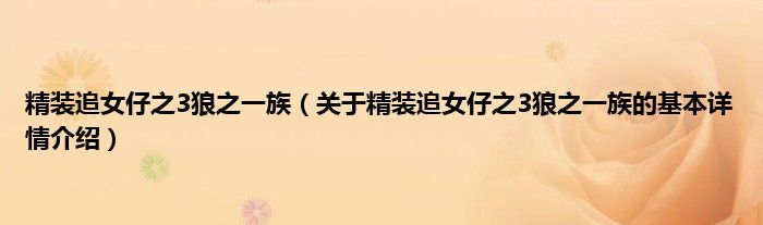 本文关于精装追女仔之3狼之一族的基本详情介绍就讲解完毕,希望对大家有所帮助。