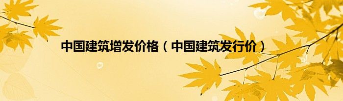 大家好,小问来为大家解答以上问题。中国建筑增发价格,中国建筑发行价这个很多人还不知道,现在让我们一起来看看吧!