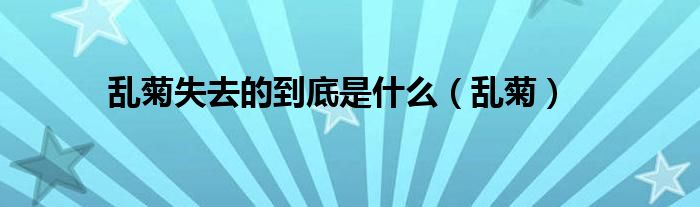 大家好,小问来为大家解答以上问题。乱菊失去的到底是什么,乱菊这个很多人还不知道,现在让我们一起来看看吧!