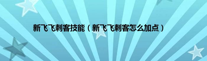 以上就是【新飞飞刺客技能,新飞飞刺客怎么加点】相关内容。