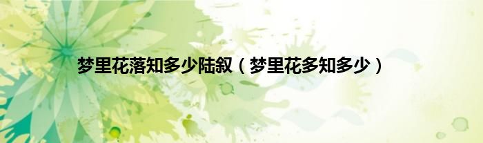 大家好,小问来为大家解答以上问题。梦里花落知多少陆叙,梦里花多知多少这个很多人还不知道,现在让我们一起来看看吧!