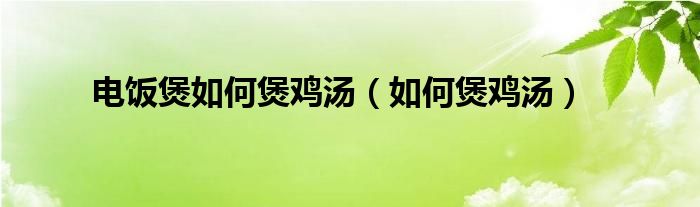 以上就是【电饭煲如何煲鸡汤,如何煲鸡汤】相关内容。
