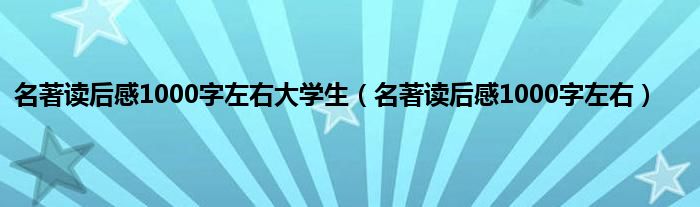 大家好,小问来为大家解答以上问题。名著读后感1000字左右大学生,名著读后感1000字左右这个很多人还不知道,现在让我们一起来看看吧!