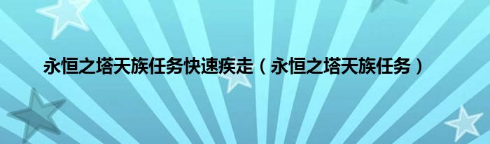 大家好,小问来为大家解答以上问题。永恒之塔天族任务快速疾走,永恒之塔天族任务这个很多人还不知道,现在让我们一起来看看吧!