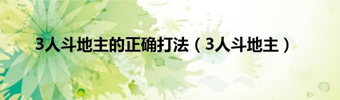 以上就是【3人斗地主的正确打法,3人斗地主】相关内容。