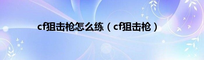 以上就是【cf狙击枪怎么练,cf狙击枪】相关内容。