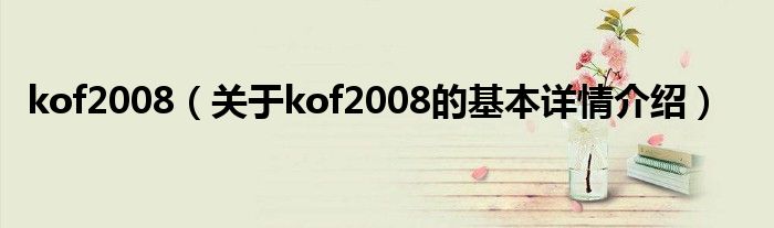本文关于kof2008的基本详情介绍就讲解完毕,希望对大家有所帮助。