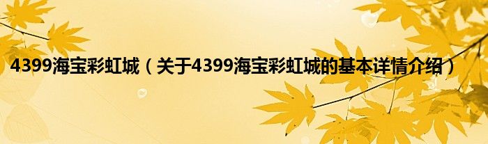 本文关于4399海宝彩虹城的基本详情介绍就讲解完毕,希望对大家有所帮助。