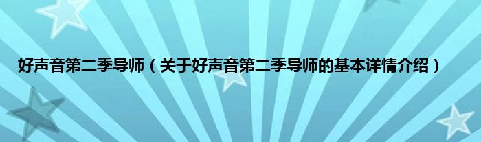 本文关于好声音第二季导师的基本详情介绍就讲解完毕,希望对大家有所帮助。