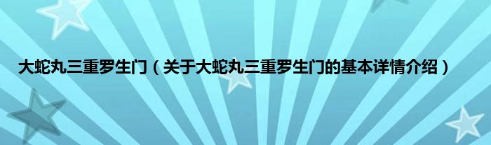 本文关于大蛇丸三重罗生门的基本详情介绍就讲解完毕,希望对大家有所帮助。