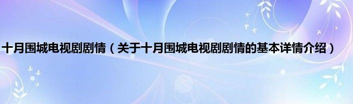本文关于十月围城电视剧剧情的基本详情介绍就讲解完毕,希望对大家有所帮助。