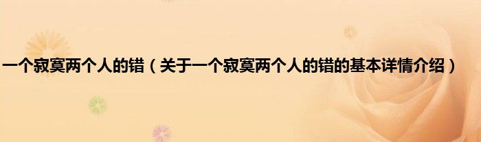 本文关于一个寂寞两个人的错的基本详情介绍就讲解完毕,希望对大家有所帮助。