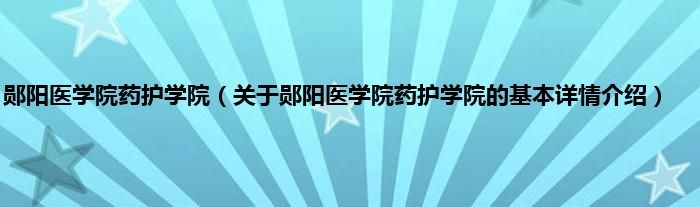 本文关于郧阳医学院药护学院的基本详情介绍就讲解完毕,希望对大家有所帮助。