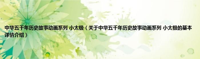 本文关于中华五千年历史故事动画系列 小太极的基本详情介绍就讲解完毕,希望对大家有所帮助。