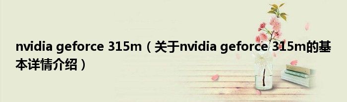 本文关于nvidia geforce 315m的基本详情介绍就讲解完毕,希望对大家有所帮助。