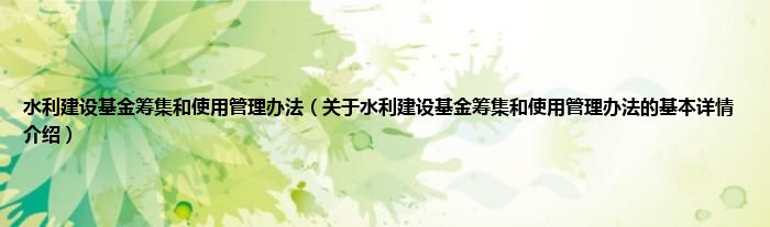 本文关于水利建设基金筹集和使用管理办法的基本详情介绍就讲解完毕,希望对大家有所帮助。