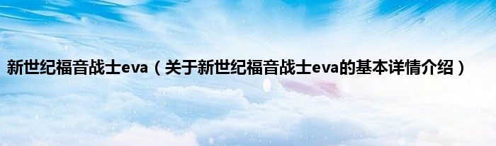 本文关于新世纪福音战士eva的基本详情介绍就讲解完毕,希望对大家有所帮助。
