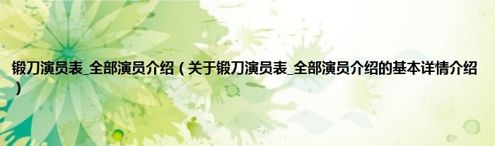 本文关于锻刀演员表_全部演员介绍的基本详情介绍就讲解完毕,希望对大家有所帮助。