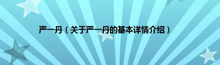 本文关于严一丹的基本详情介绍就讲解完毕,希望对大家有所帮助。