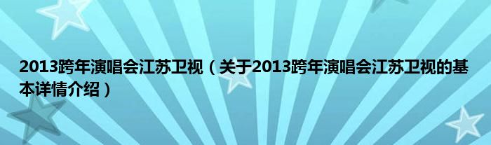 2013跨年演唱会江苏卫视(关于2013跨年演唱会江苏卫视的基本详情介绍)
