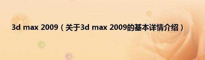 3d max 2009(关于3d max 2009的基本详情介绍)