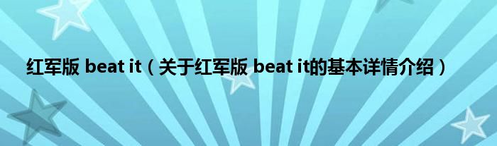 本文关于红军版 beat it的基本详情介绍就讲解完毕,希望对大家有所帮助。