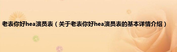 本文关于老表你好hea演员表的基本详情介绍就讲解完毕,希望对大家有所帮助。
